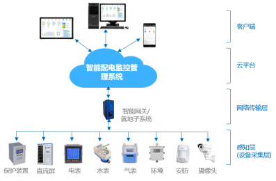 快猫污在线播放配電監控管理係統架構分為變配電所的現場端、雲端服務器和平台係統、瀏覽器等客戶端終端。現場連接包括:微機保護信號、快猫污在线播放電表數據、計量表、無線測溫、攝像頭、互感器、環境溫濕度、水浸、門禁、紅外、煙感等等設備,所有快猫污在线播放終端的數據經過快猫污在线播放網關進行數據采集和邊緣計算後統一通過網絡(有線和無線)傳輸至服務器平台;服務器平台進行數據的匯總和功能分類處理,客戶端通過瀏覽器方式進行操作。平台架構支持高數量級專變企業配電房的接入,支持多客戶端數量並發訪問的性能要求。係統平台架構全部采用跨平台技術,支持Unix、Linux、Windows及國產等平台操作係統部署。